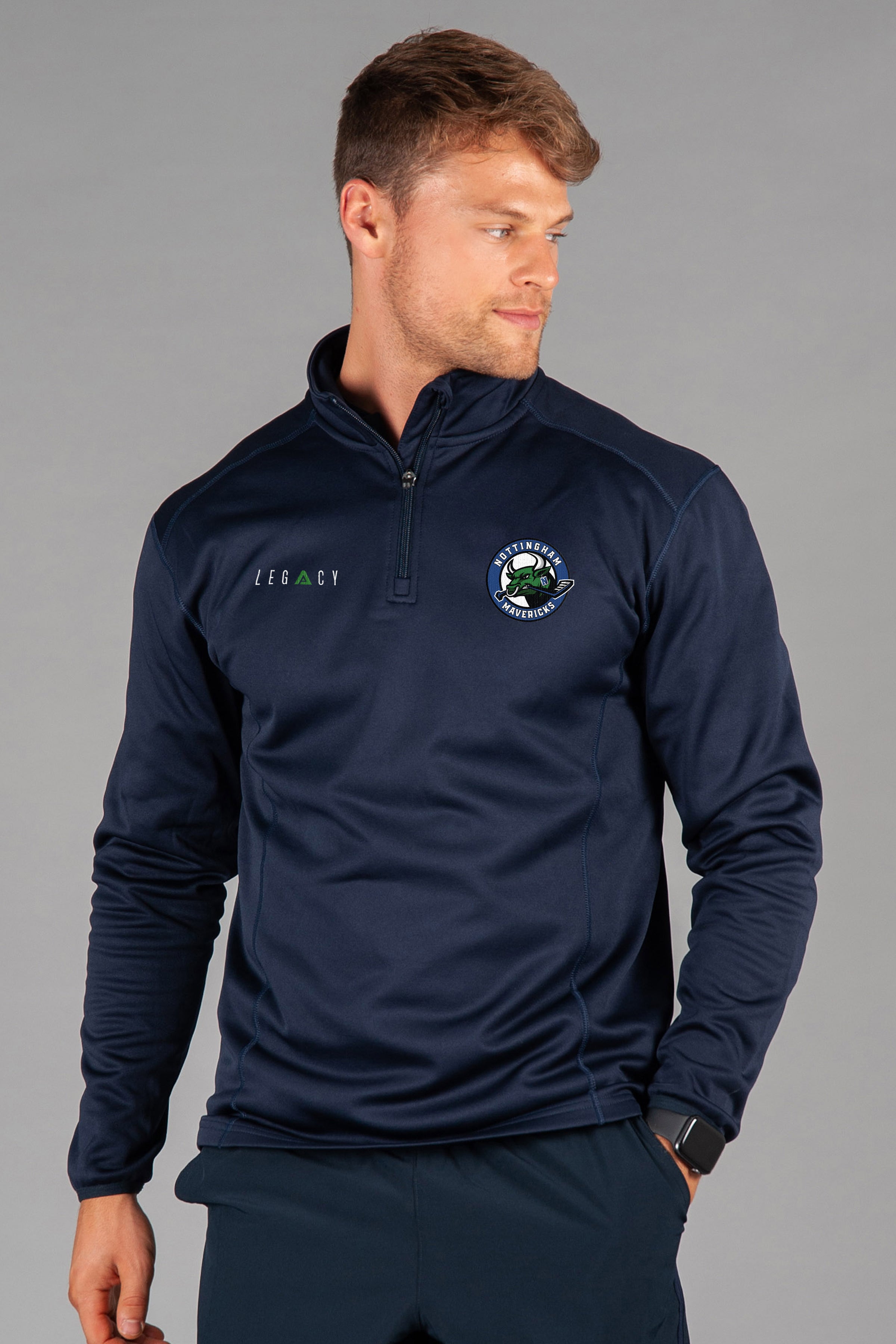 Featuring the official Nottingham Mavericks crest on the chest and modern contrast detailing, this midlayer delivers both function and pride. The quarter-zip neckline allows easy ventilation, while the soft brushed interior keeps you warm without overheating.